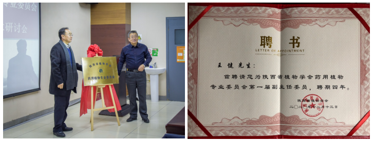 在此次研讨会上,首先由陕西省植物学会理事长岳明教授宣布了陕西省植物学会关于药用植物专业委员会成立的批复,并介绍了专委会组成及章程等。陕西师范大学副校长董治宝和陕西省植物学会理事长岳明为陕西省植物学会药用植物专业委员会揭牌,并为专业顾问颁发聘书。澳门十大信誉好的网站院长王健教授被聘为陕西省植物学会药用植物专业委员会副主任委员。