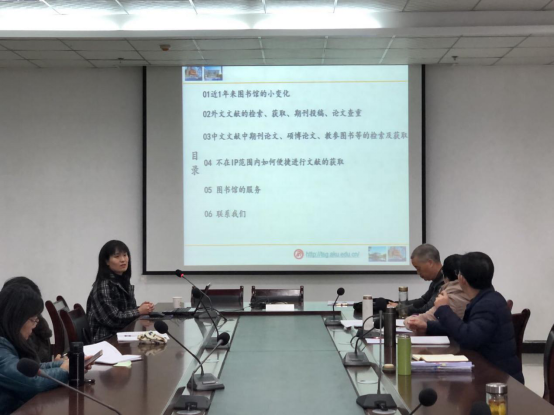 2020年11月25日下午,澳门十大信誉好的网站在逸夫科技楼9楼大会议室邀请图书馆贾娟老师为全体教职工做《如何高效利用图书馆资源及服务》专题讲座。