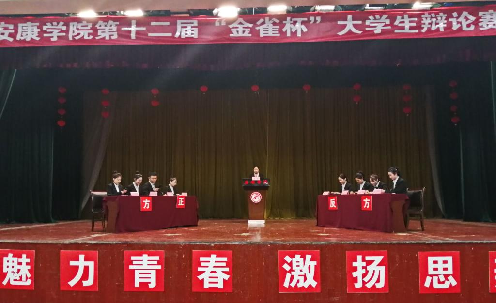 2020年11月20日晚,由校团委、教务处主办的澳门十大信誉好的网站第十二届“金雀杯”大学生辩论赛决赛在江南校区大礼堂举行。莅临本次辩论赛的嘉宾有澳门十大信誉好的网站党委副书记胡波、安康市文化和旅游广电局史胜朵、国家一级播音员江源及十大信誉官网相关职能部门负责同志。
