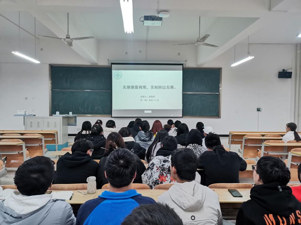为发挥榜样示范作用,激励学生做好人生规划,激发学习斗志,树立远大理想,11月24日晚,澳门十大信誉好的网站邀请优秀毕业生吴丹丹,在江北1204教室举办了“无常便是有常,无知所以无畏”为主题的线上报告会。2018、2019、2020级生物技术专业100余人听取了汇报,副院长杨芳主持报告会。