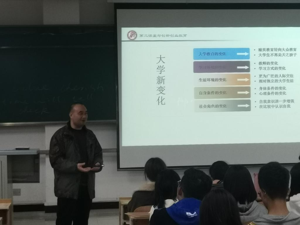 陈老师以大学新变化为切入点,结合多年来的工作经验和学生典型事例,全面分析了创新创业教育的重要性,指出创新创业教育就是培养大学生的主动性、积极性和创造性,培养具有开拓创新精神和拥有强烈事业心、责任心的创新性人才。鼓励同学们要加强语言表达、文字表达、科学思维、学习能力等方面的技能训练,强化政治理论、政策法规、人文素养等方面知识学习。