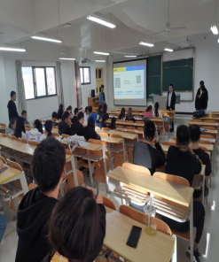 集团大学生招聘经理叶俊先生介绍了公司的基本情况、人才培养模式、本次招聘的岗位和薪资待遇,就学生关心的出差、请假、封场等问题回答了学生的提问。