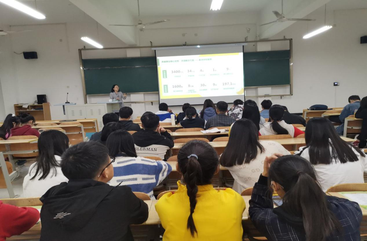 宣讲会上,杨俊亚女士从公司概况、企业文化、晋升空间、工作类型、薪资待遇等方面进行了讲解,使同学们对公司有了全面的了解。