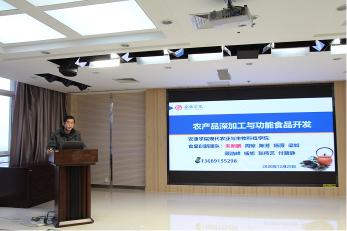 朱新鹏教授结合自己从事科研和服务安康农产品加工企业的经验,在研讨会上作了“农产品深加工与功能食品”的主题报告,总结了安康农产品加工产业存在的问题并提出发展建议,介绍了功能性食品的基本特征,给出安康功能性食品开发的对策建议,并汇报十大信誉官网食品创新团队今后的工作情况。