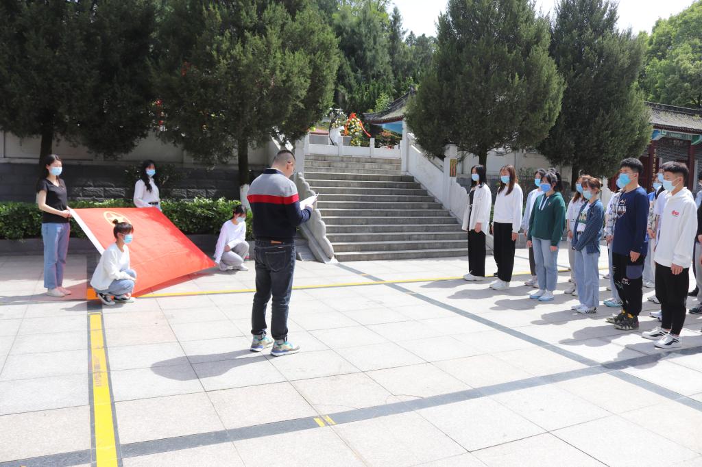 在烈士陵园,团员青年高唱《义勇军进行曲》,国歌唱毕,全场肃立,向革命烈士默哀致敬,学生代表向烈士纪念碑敬献花篮,表达深切哀思。面对鲜红的团旗,团总支书记张伟艺带领全体团员重温入团誓词,并讲授《英雄烈士谱·廖乾武》党史微团课,介绍廖乾武同志先进事迹,并号召团员青年注重和弘扬先烈精神,切实在真敬真信中坚定信念,在学思践悟中牢记使命。祭奠仪式后,全体团员聆听工作人员讲解烈士们为国家革命、建设、改革而献身的光荣事迹,先烈们英勇不屈的革命精神深深打动着在场的每一位同志。