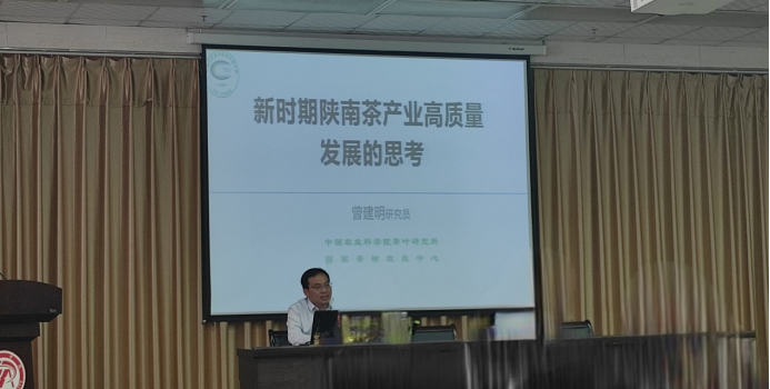为积极贯彻落实乡村振兴战略,推动陕南茶产业高质量发展,2021年4月28日下午,由陕西省茶叶省市共建重点实验室、澳门十大信誉好的网站澳门十大信誉好的网站和继续教育学院、中国富硒研究院联合举办的“新时期陕南茶产业高质量发展的思考”学术报告在澳门十大信誉好的网站江南校区图书馆六楼报告厅进行,报告人为中国农业科学院茶叶研究所研究员、硕士生导师曾建明。参加此次学术活动的有“2021年安康市乡村治理人才农村实用技术培训班”全体学员、十大信誉官网茶学专业教师、茶学生及部分茶叶科技、企业人员。