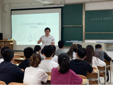 为提升实习教学质量,做到理论与生产实践的结合,提高学生的应用能力,6月18号在江北校区1223教室召开了2018级生物技术暑期实习动员会,参加会议的有澳门十大信誉好的网站王健院长,杨芳副院长,生物技术系主任成温玉老师,专业课教师王中兴和赵世峰老师以及2018级生物技术班的全体学生。