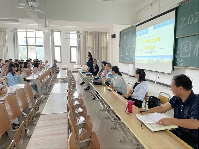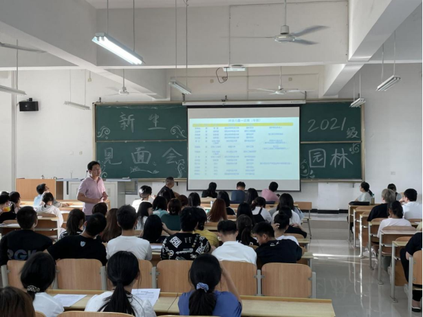 为了使新生做好开学准备,更好了解专业内涵,更快适应大学生活,园林系于2021年9月8号16点30分在江北校区教学楼1203室组织召开2021级园林专业新生师生见面会。园林系全体专业教师、辅导员金清民和2021级所有新生参加了会议。会议由园林系主任段展展主持。