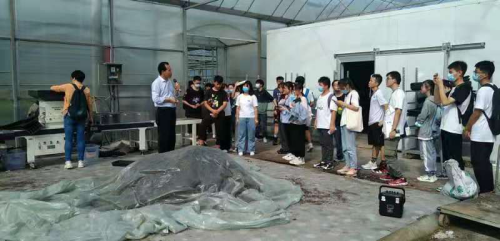 同学们到达园区后,吴斌总经理向大家介绍了公司概况,带领同学们参观了园区的智能温室、设施和先进的智能化农业生产设备。同学们面对从未见过的现代农业设施显得尤为好奇,在吴经理仔细讲解的同时,同学们积极思考,提出了一个又一个与专业相关的问题并得到了吴经理的耐心解答。