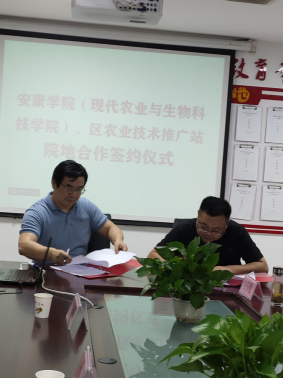 最后,王健院长与汉滨区农业技术推广站站长韩宜进行院地合作签约仪式。此次院地的成功签约为澳门十大信誉好的网站与当地产业有效融合,共同推动区域涉农应用型人才培养和双方研究人员技术水平,促进院地业务的共同发展开辟了一条新途径。