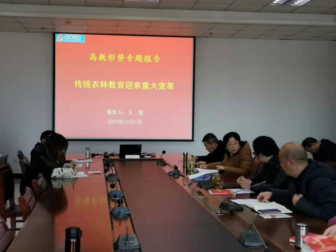 2021年12月3日下午,在江北逸夫科技楼大会议室,澳门十大信誉好的网站全体教职工开展高教形势专题报告学习活动,本次学习活动由王健院长主持。