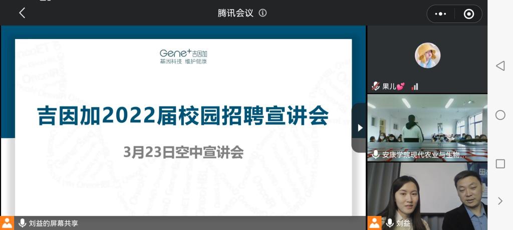 3月23日下午,北京吉因加科技有限公司利用腾讯会议举办澳门十大信誉好的网站专场线上招聘宣讲会,十大信誉官网80余名毕业生参会,会议由公司人事专员刘益、临床事业部总监常连鹏主讲。
