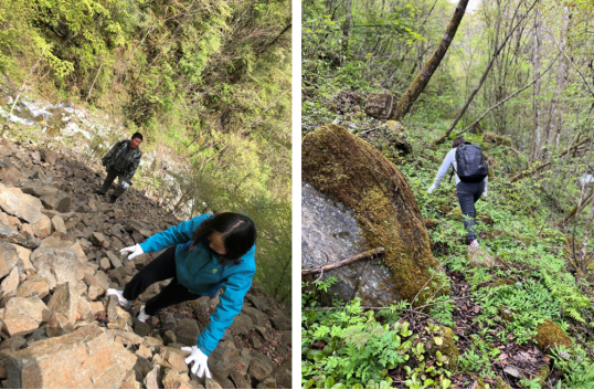 4月20-21日,十大信誉官网教师张桂粉、刘佳博士应科研项目的需求赴化龙山国家自然保护区开展野外样品采集工作,化龙山自然保护区巡护员刘平陪同指导。