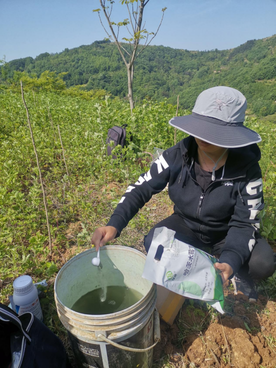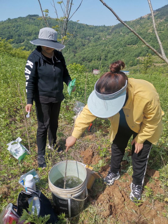 来到核桃园区,一行四人就立刻开始采集样品,搜集数据,对采集样品后对核桃根部的破坏,及时进行灌根,加快根部的修复。