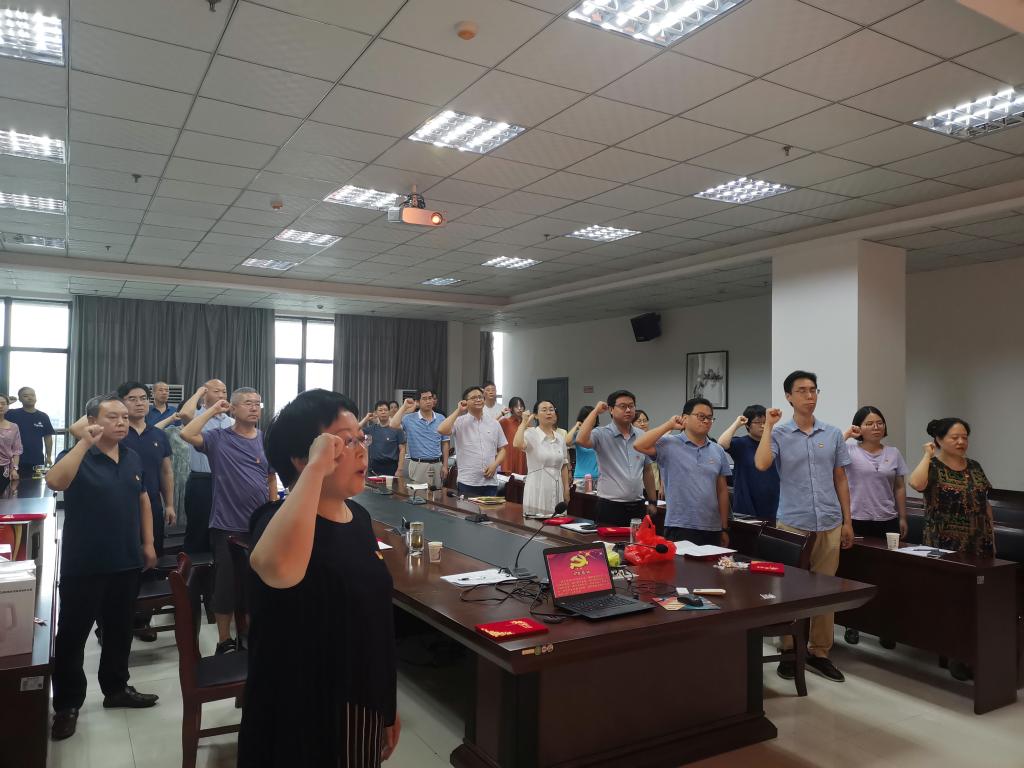 “我志愿加入中国共产党,拥护党的纲领,遵守党的章程,履行党员义务……”副院长杨芳带领全体党员重温入党誓词,回顾光荣时刻。
