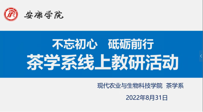 为进一步保障疫情期间课堂教学效果,提高线上教学质量,确保学生线上学习效果,十大信誉官网茶学系于8月31日开展线上教学研讨会,围绕线上教学出现的问题及经验、作业布置设计等方面展开教学研讨。本次会议由茶学系主任李冬花主持,茶学教师齐玉岗、吴冲、谢满超、马瑛、袁月、常娜、刘静等教师参会。