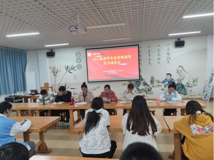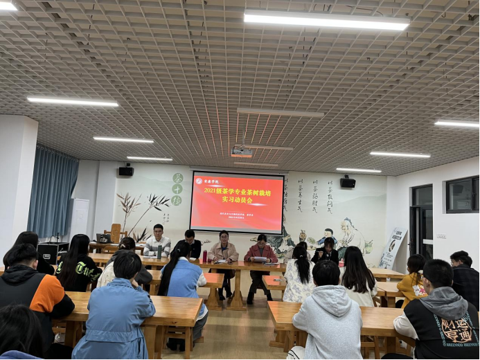 2022年10月30日下午,2021级茶学专业茶树栽培学实习动员大会在茶文化与茶艺实训室召开,会议由茶学系系主任李冬花博士主持,茶学系全体教师与茶学2021级学生参加了会议。
