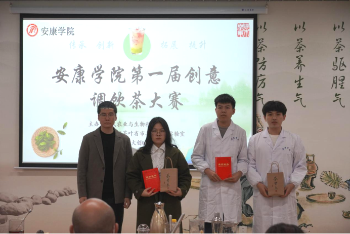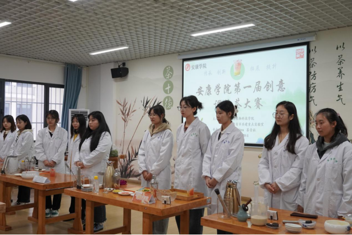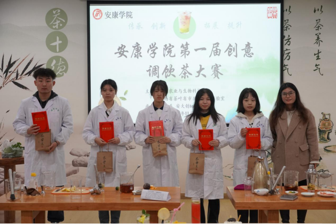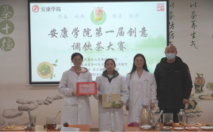 2022年11月20日上午,澳门十大信誉好的网站第一届创意调饮茶大赛暨《茶产品开发》课程展示活动于产教融合大楼茶艺实验室举行。参加本次比赛的评委主要有澳门十大信誉好的网站党总支书记孙保本、茶学系主任李冬花、陕西省茶叶省市共建重点实验室办公室主任齐玉岗及茶学专业教师程晓梅、常娜、袁月和吴冲。