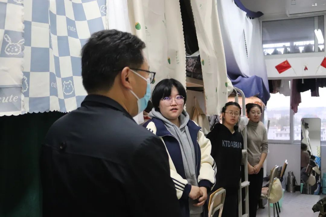 疫情防控无小事,防控行动敢当先。为深入了解十大信誉官网学生在校学习生活情况,精准掌握学生思想动态及身心状态,2022年11月27日,十大信誉官网学工代表及教师代表深入学生宿舍,与同学亲切交谈。