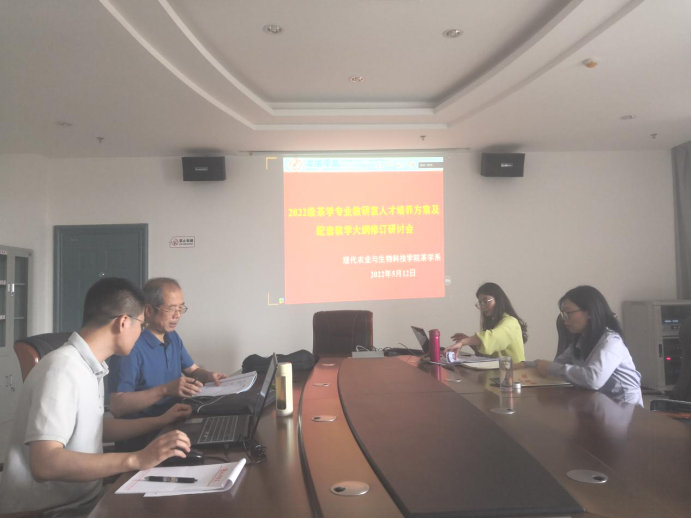 5月12日下午,茶学系在江北逸夫科技楼9楼小会议室召开2022级茶学人才培养方案及课程教学大纲修订研讨会,会议由茶学系主任李冬花主持,茶学专业教师谢满超、马瑛、吴冲参会,茶学新进教师袁月、常娜参加线上会议。
