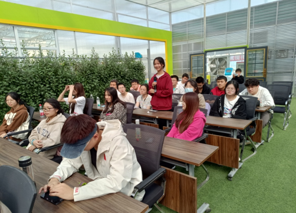 首先,园区负责人带领同学们参观了园区的立体栽培设施以及先进的智能化农业生产设备,指出现代农业的发展方向。然后,师生在园区会议室进行了座谈。座谈会上,忠诚村支部副书记、天瑞源公司副总经理吴斌进一步介绍了公司的发展理念,并从优异品种引进筛选鉴定,到快速育苗以及示范推广等方面的工作做了详细讲解,并希望同学们通过专业知识的学习,为乡村振兴注入活血。随后,孙保本、张丽琼、李川、赵卫国、刘欢、刘乔斐、刘佳、田洪云、王瑞娴、谭超等老师相继介绍了农学专业特点以及优势,并分享了自己的学习经历,要求同学们做好自己的学习规划,为自己的成长成才积极努力。