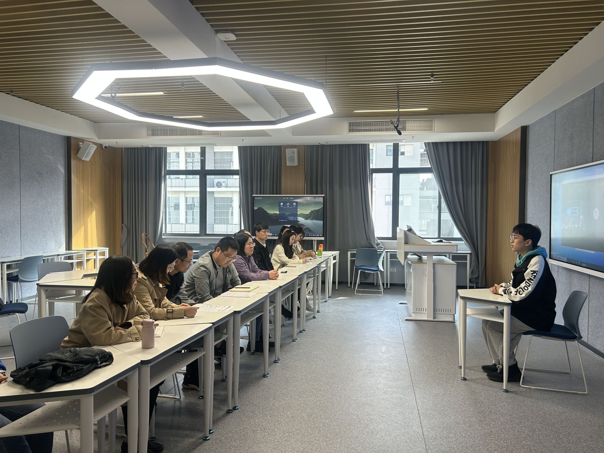 活动严格按照考研复试流程设置中英文自我介绍、专业问答、英语问答、时政热点和开放式问答等环节,旨在最大程度还原复试真实场景,帮助学生熟悉流程、练习技巧,以提高复试通过率。各教研室老师逐一对参与学生复试中存在的问题进行指导反馈,并从科研经历、读研规划、毕业论文、实验技能等重点内容准备提出详细建议。