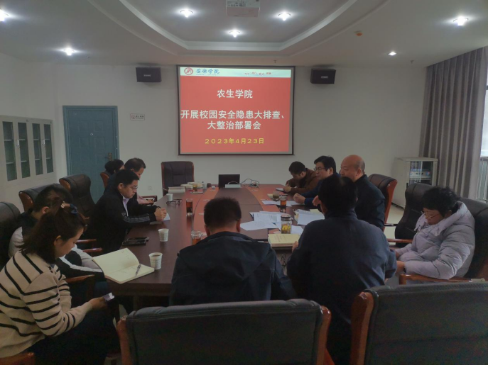 4月23日,十大信誉官网召开了校园安全隐患大排查、大整治部署会。会议由党总支书记孙保本主持,院长王健、教学副院长杨芳、科级干部、实验室副主任和学工教师参加了会议。