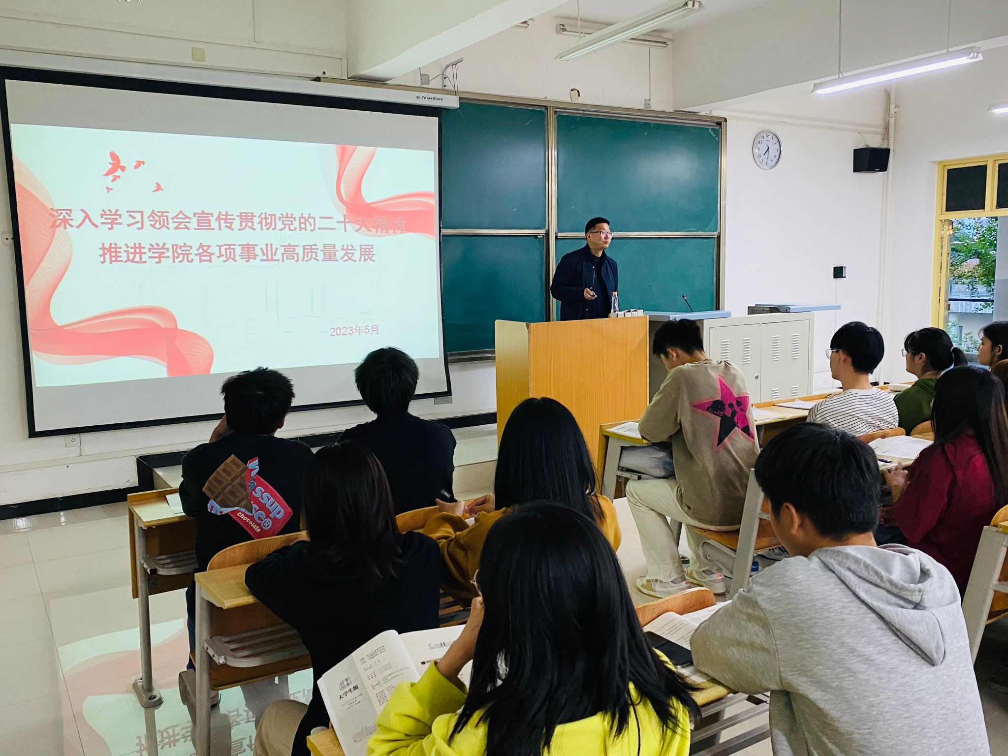 5月12日晚,学校党委委员、副校长张东红围绕“深入学习领会宣传贯彻党的二十大精”主题,为我院学生讲授形势与政策课。