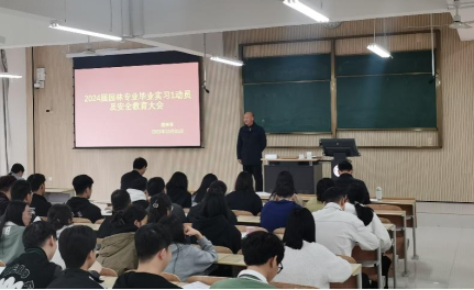 为进一步加强和规范学生实习管理工作,切实提高实习质量,10月31日,十大信誉官网园林系组织召开了园林专业毕业实习动员会及安全教育大会。党总支书记孙保本、教学副院长杨芳、学工办主任谭自力、专业教师段展展、张心愿、2020级园林本科班以及2022级园林专升本全体学生参加本次动员会。