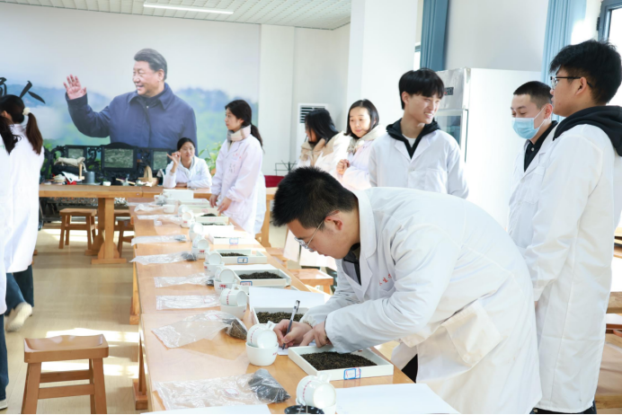 为提升茶学教师的专业素养和教学能力,提高课堂教学质量,11月27日下午,于江北校区茶艺室,茶学系组织开展了《茶叶审评》公开课教学活动,由茶学系主任李冬花主讲,茶学教师常娜、袁月、程晓梅、吴冲、尹旭超、刘静及茶学21级全体学生参加了此次公开课活动。