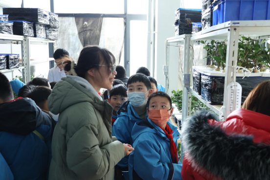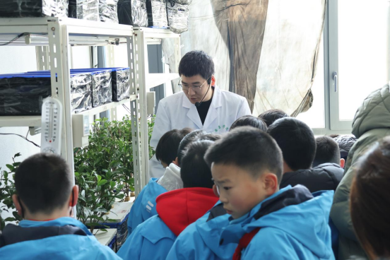 在茶树无土栽培实验室,吴冲和常娜老师为学生们介绍了茶树植物学特征及茶树栽培相关知识,同时老师们对学生的疑问进行解答。