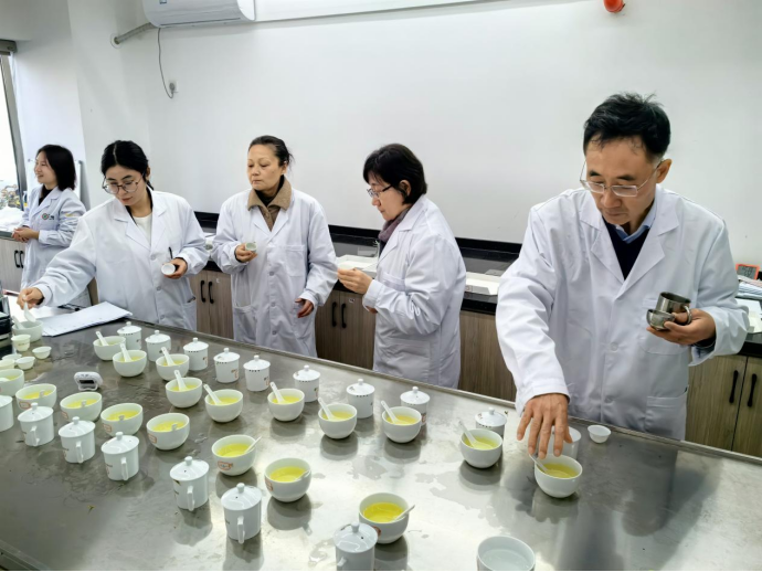 3月26日,李冬花、常娜等5名组成专家评审组按照《茶叶感官审评方法》国家标准,从外形、汤色、香气、滋味、叶底等方面,就手工制茶大赛中,紫阳毛尖传统手工样品茶进行样品评审。