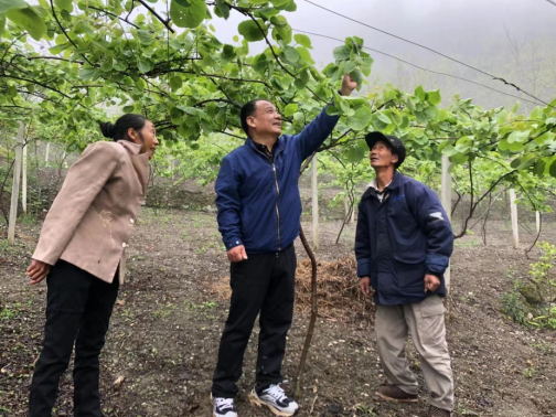 沈大刚副教授与赵站长深入寺姑村猕猴桃园,详细查看了园内猕猴桃春季枝条发芽情况。随后沈大刚老师向当地果农和园区业主详细讲解了春季猕猴桃树抹芽和疏蕾的方法及注意事项,并实时示范操作要领。