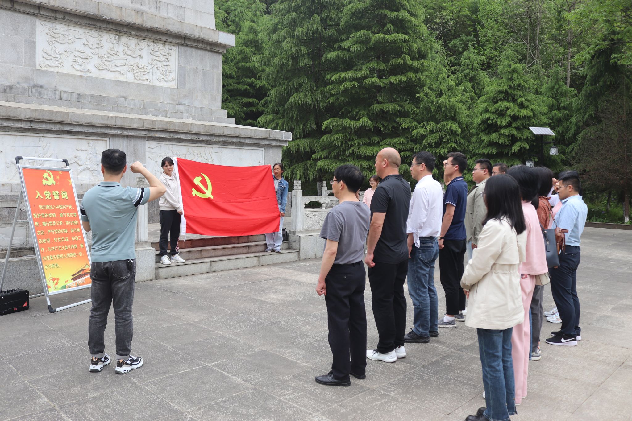 在红军英雄纪念碑前,全体党员重温了入党誓词,并向革命烈士纪念碑三鞠躬,表达缅怀之情。在讲解员带领下,全体党员拾级而上,一幅幅英雄浮雕墙,讲述了红二十五军的革命光辉事迹,在红军老祖墓前,全体党员肃穆而立,向“神医”、“医官”之称的指导员高中宽和尚班长之墓表达敬仰之情。随后,参观了党史资料馆、兵器馆、生活馆、综合馆等主题展馆,认真观看了珍贵的历史资料和文物,深刻领会到革命先烈不畏艰险、不怕牺牲、顽强拼搏的革命精神和遵守党的纪律,密切联系群众,为民谋利益的崇高思想品德。