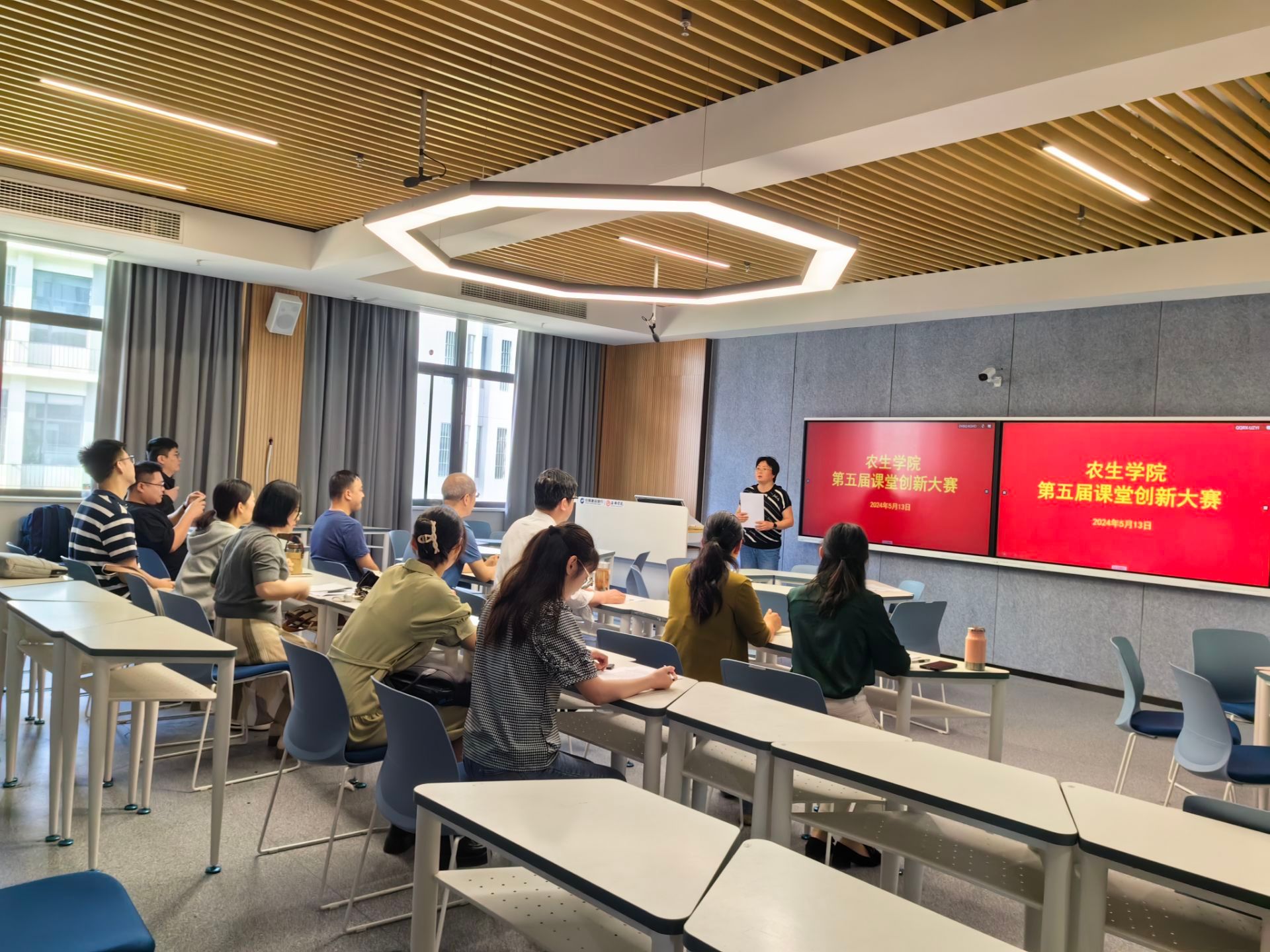 5月13日,澳门十大信誉好的网站第五届课堂教学创新大赛在乡村振兴学院举行。本次比赛共有五个系24名教师参赛,本次活动由教学副院长杨芳主持,院长王健、党总支书记孙保本和无课教师观摩整场比赛。