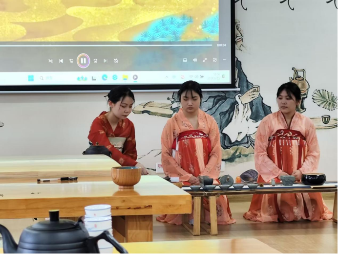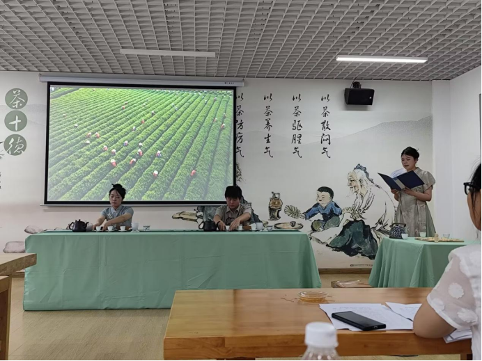 6月15日下午,茶学2023级《茶艺训练》课程成果展示在产教融合大楼茶艺室进行。茶学2023级全体同学参与展示,茶学系教师马瑛、袁月、尹旭超担任评委。活动由茶学22级学生田媛媛和夏雨主持。