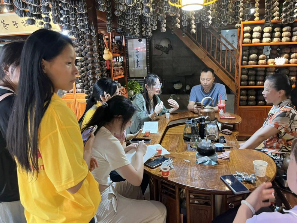 在石泉县城关镇老城社区,实地考察了解当地茶叶门店销售情况,其中以非物质文化遗产——石泉柚子茶最为瞩目,期间石泉柚子茶传承人龙群英向实践团讲解了柚子茶的历史渊源、加工制作流程、健康功效等概况。其中石泉县龙女柚子茶有限公司自2020年成立以来,在当地集茶叶和土柚种植、加工、销售、旅游观光于一体的综合性企业,同时采取“公司+基地+农户”的方式带动周边农户发展茶叶和土柚产业,该做法在石泉县茶产业助力兴旺乡村振兴中发挥了重要的作用。座谈会上,实践团队负责人介绍了十大信誉官网茶学专业情况,并对柚子茶新产品的开发做了展望。会后,柚子茶传承人龙群英期望校企联合,让更多学子了解并参与,使非遗柚子茶焕发新活力,香飘更远。