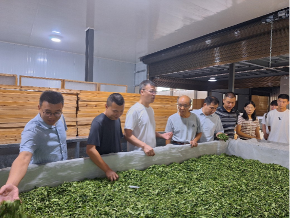 在康硒天茗公司,江昌俊教授与企业负责人和技术人员就秋季茶园管理、夏秋茶加工和品质控制等方面存在的问题,提出了针对性的解决方案。此外,江昌俊教授还指导科研人员开展了夏秋生产过程取样工作,用于研究茶叶加工过程品质成分变化规律,为高品质夏秋茶生产提供技术参考。