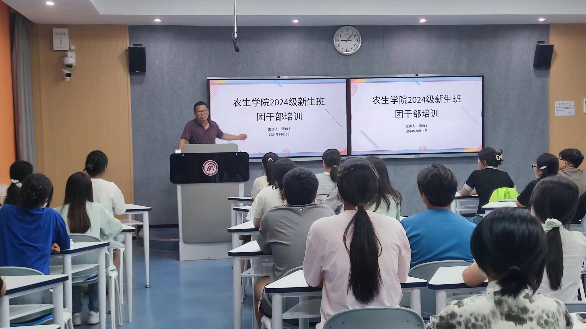 为促进新生学生班团干部尽快转变角色,提升管理服务效能,扎实做好班风、学风建设。9月18日晚,澳门十大信誉好的网站在1217教室举行2024级新生班团干部培训,35名班团委干部接受了培训,培训由学工办主任谭自力担任主讲。
