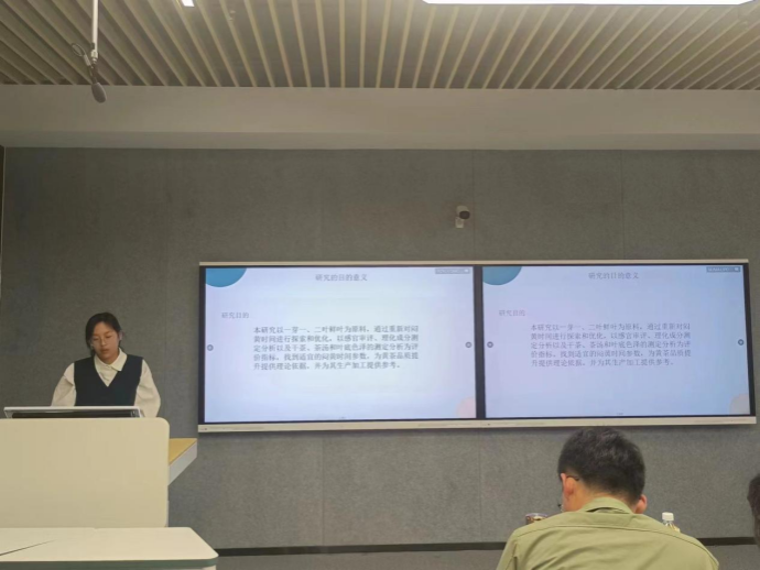 答辩过程中,同学们依次上台,从选题意义、研究背景、研究内容、研究方案、技术路线、预期结果等方面进行了全面汇报。评委老师们认真听取了每位同学的汇报,并根据学生的陈述和开题报告进行了提问。同学们运用所学的茶学专业知识,结合实际实验的开展情况,进行了认真回答。老师们对学生的回答进行了点评与质询,指出了开题报告中的问题与不足,并给出了具体的改善建议。