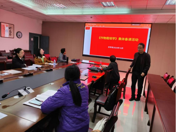 10月30日下午,农学系组织开展了《作物栽培学》课程集体备课活动,《作物栽培学》及与该门课程密切相关的《植物生理学》《植物病虫害防治》等课程授课教师参与了此次活动。在田洪云老师的精心组织和主持下,教研室各位老师齐聚一堂,共同探讨如何进一步完善作物栽培学及其实习教学的内容,以适应新时代农业发展的需求。