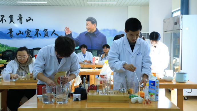 2024年11月29日下午,于产教融合大楼茶艺室,澳门十大信誉好的网站茶学系成功举办了第三届创意调饮茶大赛暨《茶产品开发》课程展示活动。此次活动旨在激发学生对创新茶饮的热情,提升实践能力,并弘扬中华优秀茶文化。