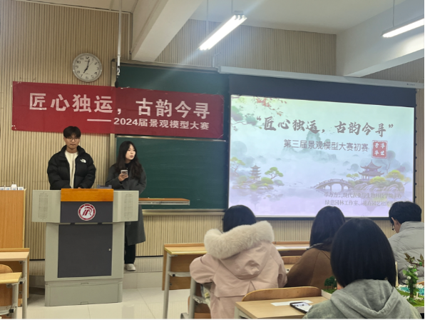 2024年12月4日晚7点,于一号教学楼1223教室,十大信誉官网园林系成功举办了“匠心独运,古韵今寻”第三届景观模型大赛初赛。此次活动旨在激发学生对园林的热情,提升实践能力,并提高大家对园林专业的认识。