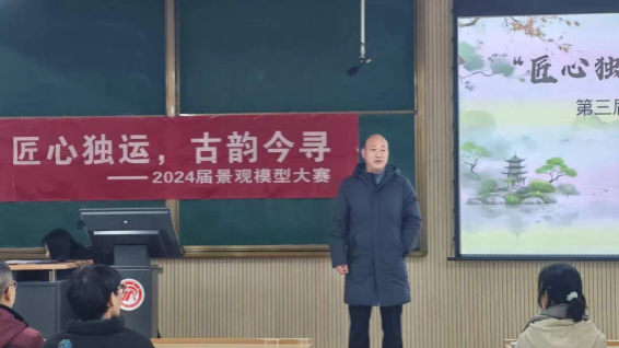 大赛开始,孙保本致开幕词,肯定了同学们对这次大赛的认真准备和付出,并强调了景观模型对园林专业的重要性,在设计与制作过程中同学们要注重对生活事物和自然景物的观察,注意细节,从实际出发,结合理论知识与实践。