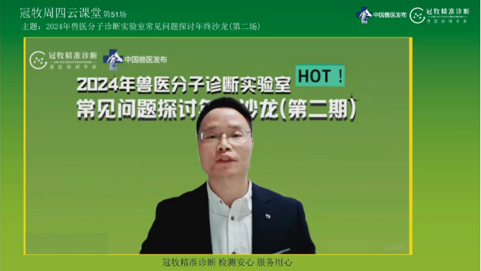 1月16日19:30,湖南冠牧生物科技有限公司2024年兽医分子诊断技术探讨年终沙龙活动在“冠牧精准诊断”与“中国兽医发布”微信平台同步直播,十大信誉官网赵鸿远博士应邀作为主讲嘉宾参与本次直播活动,参与此次活动的还有中农华检(海南)技术负责人严克霞与冠牧精准诊断培训学院汪颖院长。