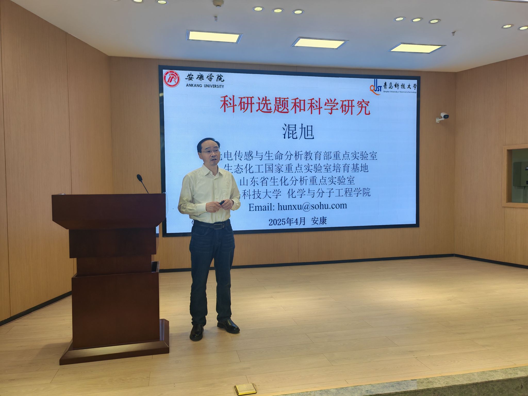 报告中,混旭教授结合自身丰富的科研经验,从科学研究选题的重要性、创新思维的培养、科学研究的逻辑与方法等多个维度展开深入讲解。他强调了科研选题应立足学科前沿,紧密结合国家战略需求,同时注重跨学科融合,以问题为导向开展深入研究。此外,混教授还通过生动的案例分享了科研论文写作、项目申报及团队协作的实践经验,为在场师生提供了宝贵的学术指导。
