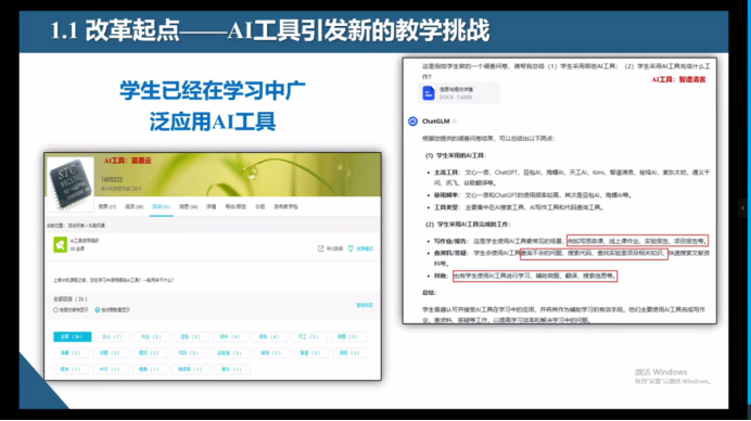 研修班邀请了国家级首批现代产业学院光伏科技学院的钱斌教授担任主讲嘉宾,围绕“AI技术与专业建设融合路径”展开系统讲解。内容涵盖人工智能专业体系建设、课程教材开发、应用场景设计、产教融合及国际合作五大模块。钱斌教授结合《教育强国建设规划纲要(2024-2035年)》的核心要求,强调AI作为“教育现代化核心引擎”的重要性,并提出构建“三全两高”(全场景覆盖、全流程优化、全要素协同,高效率治理与高质量育人)的智能教育生态体系。
