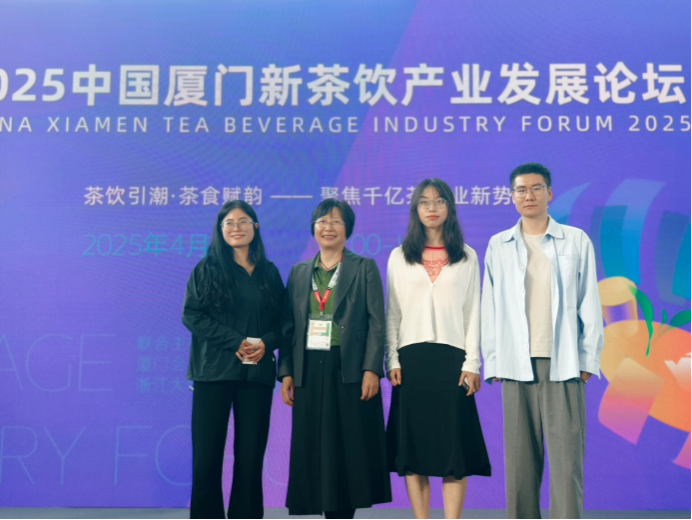 4月19日参加2025中国厦门新茶饮产业发展论坛,该论坛以“茶饮引潮·茶食赋韵——聚焦千亿茶产业新势能”为主题,汇聚茶产业多领域专家,围绕新茶饮供应链、原料科学、产品创新及茶食融合等方向展开深度探讨,展现行业发展的多维视角与创新活力。任嘉怡以“新茶饮供应链发展与未来”为题,梳理新茶饮产业发展;杨子银研究员以“新茶饮茶基底香气品质研究进展”为题,聚焦花香形成机理,分析茶原料品种与加工环节对香气的影响,解析植物学视角下的原料研发逻辑,为新茶饮风味创新提供科学支撑,推动产品品质与差异化的提升;张星海教授以“解码千亿新茶饮赛道的教育赋能与产业突围”为题,强调人才培养对产业发展的重要性。黄其祥以“茉莉花茶新茶饮产品开发”为题,分析茉莉花茶在新茶饮中的实际应用,探讨传统茶饮的现代转型路径;张银英以“新茶食对于茶产业发展的重要性”为题,提出“新茶食”概念,从行业未来、市场前景、实战经验与产品创新四个维度,强调茶衍生食品在延伸产业链、提升附加值中的作用。浙江大学屠幼英教授以“新茶饮与新茶食现状和未来发展趋势分析”为题,聚焦新茶饮发展方向与新茶食市场,剖析两者的融合趋势,从技术研发到市场应用打通产学研闭环,引领行业可持续发展。会后,茶学系老师与参会专家就新茶饮、新茶食的科研方向及合作模式展开交流,为后续教学与科研积累宝贵资源。