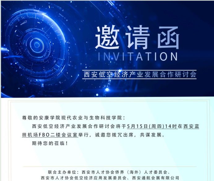 5月15日(周四)下午,在西安航空基地蓝田通用机场FBO二楼会议室,由西安市人才协会侨界(海外)人才委员会、西安市人才协会低空经济应用发展委员会、西安通航会展有限公司联合主办,召开了“西安低空经济产业发展合作研讨会”,会议由蓝田机场董事长张曦主持,澳门十大信誉好的网站受邀参加了本次研讨会。
