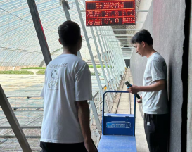 在园区内,工作人员向师生们详细介绍了物联网技术在园区内的应用场景,园区配备大量传感器及智能轨道车,传感器可以实时监测土壤湿度、酸碱度与空气温湿度,监测的数据上传到云端后,系统会自动调节轨道车进行灌溉、施肥。
